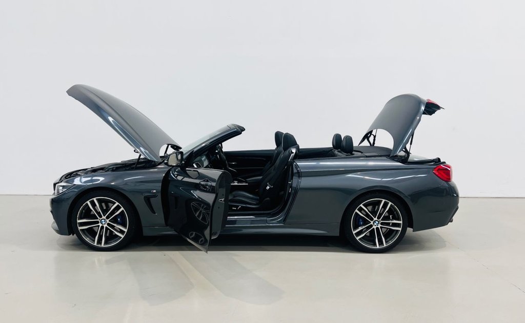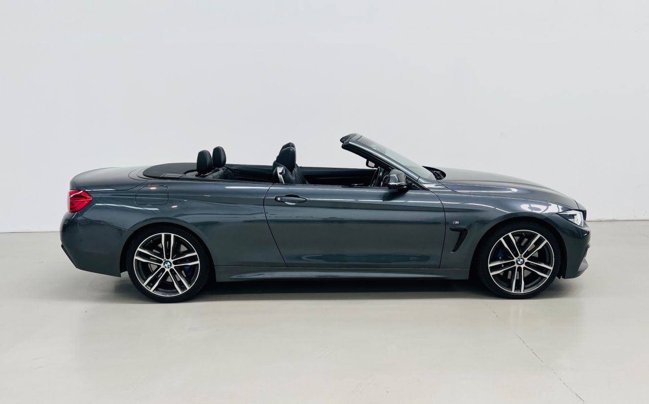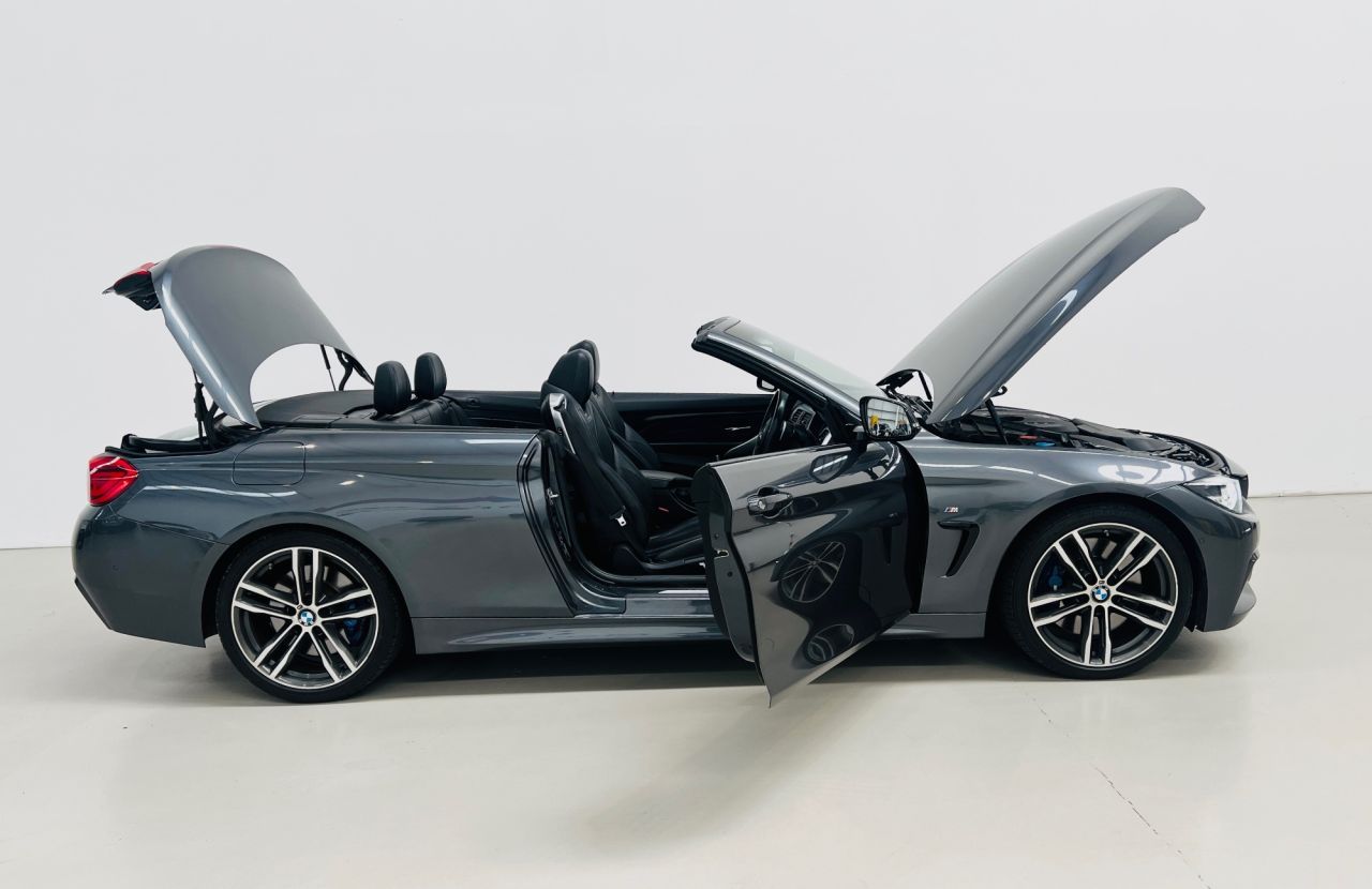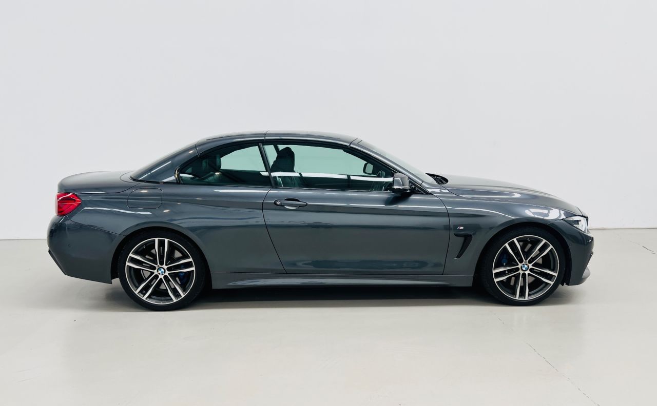 This stunning BMW 430i M Sport Convertible is the perfect companion for summer driving, offering open-top thrills, refined luxury and performance in equal measure. Finished in sophisticated Mineral Grey metallic with contrasting Black Dakota Leather, this convertible strikes an elegant yet sporty profile that turns heads wherever it goes. Powered by a responsive 2.0-litre TwinPower Turbo petrol engine, the 430i delivers an impressive 258bhp through a smooth 8-speed automatic transmission. With quick acceleration and composed handling, it offers an engaging drive whether the roof is up or down. The M Sport Pro Package takes the experience even further, adding larger M Sport Brakes for greater stopping power, striking 19" Double Spoke M alloy wheels, and a Harman-Kardon Loudspeaker System for crystal-clear sound throughout the cabin. This car has been designed with top-down driving in mind, making it the ultimate summer car. With the roof folded away, you can enjoy the sun and fresh air in comfort thanks to features like the Warm Air Collar, Wind Deflector and Heated Front Seats, ensuring every drive is enjoyable no matter the temperature. For those cooler evenings, the Heated Steering Wheel adds a touch of luxury, keeping you warm and relaxed behind the wheel. Inside, you'll find BMW's full Digital Cockpit, delivering sharp, customisable driver displays, alongside the intuitive iDrive infotainment system. The cabin is finished to the highest standard, combining high-quality materials with ergonomic design to create a space that is both functional and stylish. Practicality is also taken care of with front and rear Parking Sensors, a Reversing Camera and Parking Assistant, helping you navigate tighter spaces with ease. Dual-zone Automatic Air Conditioning ensures the perfect cabin temperature at all times, while the spacious boot and folding rear seats add flexibility for weekend getaways. With its combination of performance, luxury and convertible freedom, this BMW 430i M Sport Convertible is everything you could want in a summer car – stylish, thrilling and beautifully equipped. A perfect choice for those who want to enjoy every journey with the roof down and the road ahead.