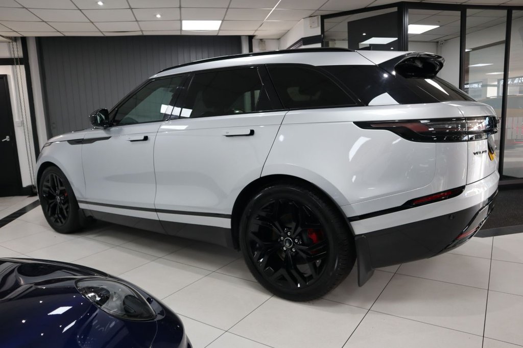 NEW SHAPE VELAR JUST ARRIVED INTO STOCK! COVERING ONLY 7K MILES FROM NEW BACKED WITH FULL LAND ROVER MAIN DEALER SERVICE HISTORY! VERY SOUGHT AFTER EXAMPLE, SIMPLY STUNNING! FINISHED IN HAKUBA SILVER METALLIC WITH FACTORY BLACK EXTERIOR PACKAGE! SPEC INCLUDES, ELECTRONIC AIR SUSPENSION, FULL GLASS PANORAMIC ROOF, UPGRADED 21 INCH BLACK ALLOY WHEELS, MERIDIAN PREMIUM SOUND SYSTEM, ADAPTIVE CRUISE CONTROL, HEATED LEATHER MULTI FUNCTION STEERING WHEEL, HEATED FRONT SEATS, PRIVACY GLASS, PIVI DIAMOND TOUCHSCREEN INTERFACE, ANDROID AUTO AND APPLE CARPLAY, INTERACTIVE DRIVER DISPLAY, AUTO HIGH BEAM ASSIST, RED PAINTED BRAKE CALIPERS, 11.4 INCH TOUCHSCREEN, BLIND SPOT ASSIST,, NAVIGATION MEDIA, DAB DIGITAL RADIO, HEATED WINDSCREEN, LED PREMIUM HEADLIGHTS, KEYLESS ENTRY/PUSH BUTTON START, LANE KEEP ASSIST, POWERED TAILGATE! PANORAMIC ROOF, PAN ROOF, GLASS ROOF, EXCEPTIONAL VALUE FOR MONEY, EARLY VIEWING IS ESSENTIAL TO AVOID DISAPPOINTMENT, VERY BEST COLOUR COMBINATION, COMPREHENSIVE WARRANTY OPTIONS AVAILABLE, AA BREAKDOWN COVER AVAILABLE, STUNNING SHOWROOM CONDITION, MUST BE SEEN NOT TO BE MISSED, BE VERY QUICK THIS GEM WILL SOON GO!, VIEW MORE PICS ON OUR WEBSITE, PLEASE CALL FOR FULL SPEC, SIMPLY STUNNING!
