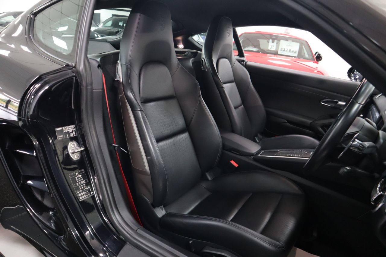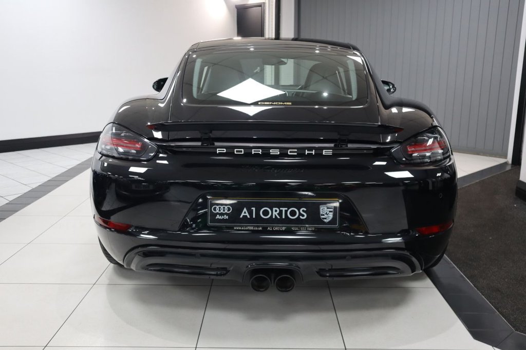IMPECCABLE 718 CAYMAN JUST ARRIVED INTO STOCK! COVERING 28K MILES FROM NEW BACKED WITH SERVICE HISTORY! SIMPLY STUNNING, OVER £10K IN FACTORY FITTED EXTRAS! FINISHED IN JET BLACK METALLIC! SPEC INCLUDES, UPGRADED 20 INCH 911 TURBO ALLOY WHEELS, ELECTRIC HEATED SPORTS SEATS PLUS, BOSE PREMIUM SURROUND SOUND, SPORTS TAILPIPES, GT SPORTS LEATHER STEERING WHEEL, GUARDS RED INSTRUMENT DIALS AND SEAT BELTS, REAR PAINTED APRON, REAR SIDE AIR INTAKE GRILLES PAINTED, SIDE WINDOW AND TRIANGLE TRIMS PAINTED IN HIGH GLOSS BLACK, HEATED FRONT SEATS, FRONT AND REAR PARK ASSIST, PORSCHE CREST ON HEADRESTS, PORSCHE COMMUNICATION MANAGEMENT INCLUDING NAVIGATION, DIGITAL RADIO! EARLY VIEWING IS ESSENTIAL TO AVOID DISAPPOINTMENT, COMPREHENSIVE WARRANTY OPTIONS AVAILABLE , AA BREAKDOWN AVAILABLE STUNNING SHOWROOM CONDITION, MUST BE SEEN NOT TO BE MISSED, FIRST TO SEE WILL BUY, BE VERY QUICK THIS GEM WILL SOON GO!, VIEW MORE PICS ON OUR WEBSITE, PLEASE CALL FOR FULL SPEC, SIMPLY STUNNING!