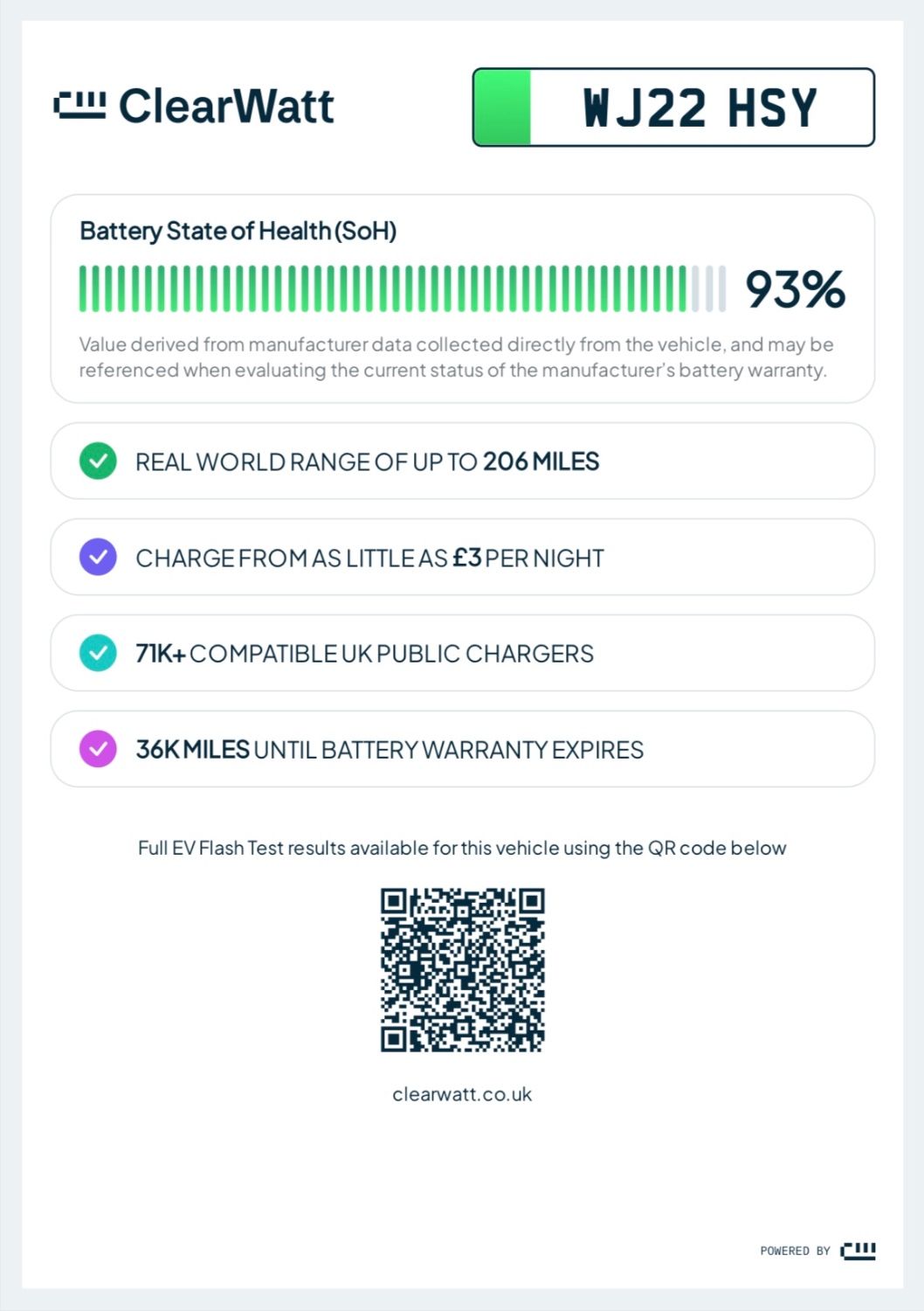 Regular charging habits, climate, and mileage can all influence battery health. This report helps take the guesswork out of buying an electric car, giving you clarity, confidence, and peace of mind.