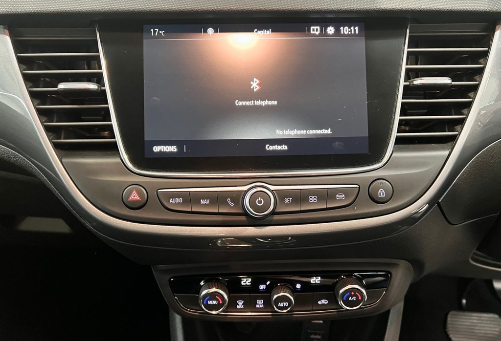 The 2020 (70) Vauxhall Crossland X 1.2 Turbo Elite Nav Auto is a stylish and well-equipped compact SUV that combines practicality with premium comfort and advanced technology. Finished in sleek White Jade paintwork, this example presents a fresh, modern appearance that highlights the Crossland X's clean lines, elevated stance, and distinctive Vauxhall design. Under the bonnet sits Vauxhall's efficient 1.2-litre Turbo petrol engine paired with a smooth automatic transmission, producing 128bhp and 230Nm of torque. This refined powertrain offers a strong balance of performance and economy, delivering a 0–62mph time of around 9.9 seconds and a top speed of 122mph. Despite its lively character, it remains economical to run, returning up to 45.6mpg (WLTP combined) and emitting from just 142g/km of CO? — making it ideal for both urban and motorway driving alike. The Elite Nav trim level brings an impressive level of specification, blending style and substance throughout. Inside, the cabin feels both premium and functional, with part-leather effect and cloth upholstery, a leather multifunction steering wheel, and ambient interior lighting. The centrepiece of the dashboard is the 7-inch colour touchscreen infotainment system featuring satellite navigation, DAB digital radio, Apple CarPlay, Android Auto, Bluetooth connectivity, and USB inputs, ensuring seamless access to media, maps, and communication on the go. Comfort and convenience are key strengths of the Elite Nav, offering dual-zone electronic climate control, automatic headlights, rain-sensing wipers, cruise control with a speed limiter, and a height-adjustable driver's seat with lumbar support. The practicality of the Crossland X shines through with a spacious cabin and versatile rear seating that folds in a 60/40 split, expanding the already generous 410-litre boot to over 1,200 litres when required — perfect for family trips or weekend adventures. Externally, the Elite Nav stands out with 17-inch diamond-cut alloy wheels, chrome window surrounds, LED daytime running lights, front fog lights, contrasting black roof and mirror caps, and privacy glass, giving the car a confident and contemporary look. Safety is also a major focus, with a suite of driver assistance systems as standard, including Forward Collision Alert, Lane Departure Warning, Speed Sign Recognition, Hill Start Assist, and a Driver Drowsiness Alert system. Front and rear parking sensors, combined with a rear-view camera, make manoeuvring in tight spaces effortless. Blending practicality, efficiency, and premium features, the 2020 Vauxhall Crossland X 1.2 Turbo Elite Nav Auto in White Jade delivers an excellent all-round package. With its smooth automatic gearbox, strong specification, and smart modern styling, it's a superb choice for drivers seeking a compact SUV that offers comfort, technology, and everyday versatility in equal measure.